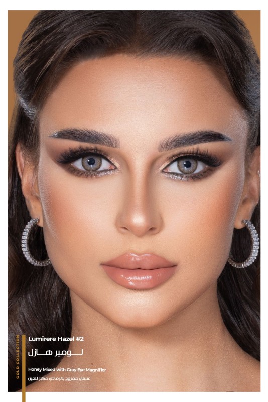Dahab Lumirere Hazel is an exclusive light brown colored contacts with a unique starburst pattern and soft limbal ring. Ideal for day time and evening wear, this natural colored lens is suitable for dark eyes and comes with or without prescription!